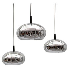 Ein Trio von Glasreflektor-Hängeleuchten, hergestellt in England von Holophane. Um 1920. Dies sind frühe Beispiele für das, was sich später zum ikonischen Reflektor-Refraktor-Anhäng...