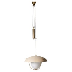 French Mid-Century Opaline Glass Pendelleuchte, Messingfassung