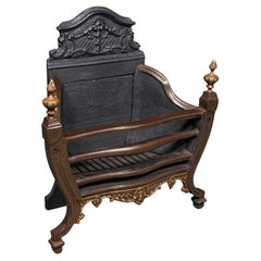 Ein Georgian Style Medium Sized, konisch brüniert Gusseisen Feuerrost mit & poliertem Stahl Frett & Finials.