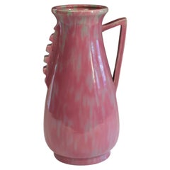 Beigefarbene Art-Déco-Keramikvase mit roten Griffen von Anna-Lisa Thomson, Upsala Ekeby