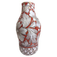 Diese um 1910 in Frankreich hergestellte und wahrscheinlich aus der Region Longwy stammende Jugendstilvase aus emaillierter Fayence hat eine hohe Balusterform und ist mit schwerem Em...