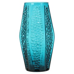 1970er Handgefertigtes Kunstglas Blaue Vase Polen