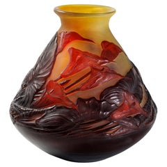 Diese Jugendstilvase aus Keramik wurde 1919 von Josef Ekberg bei Gustavsberg entworfen und stammt aus der klassischen Sgrafitto-Serie. Die Vase ist 34,5 cm (13,8") hoch. Sie ist insg...