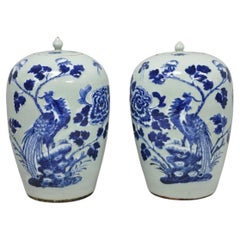 Paar große chinesische Export Porzellan blau & weiß bedeckt Krüge Hand gemalt 1870