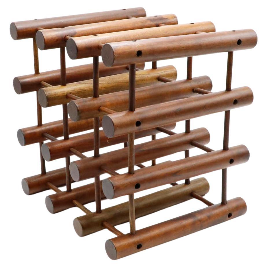 Elegantes Weinflaschenregal aus massivem Edelholz mit einem abstrakten geometrischen Design, das für den mexikanischen Modernismus der Mitte des Jahrhunderts charakteristisch ist. Da...