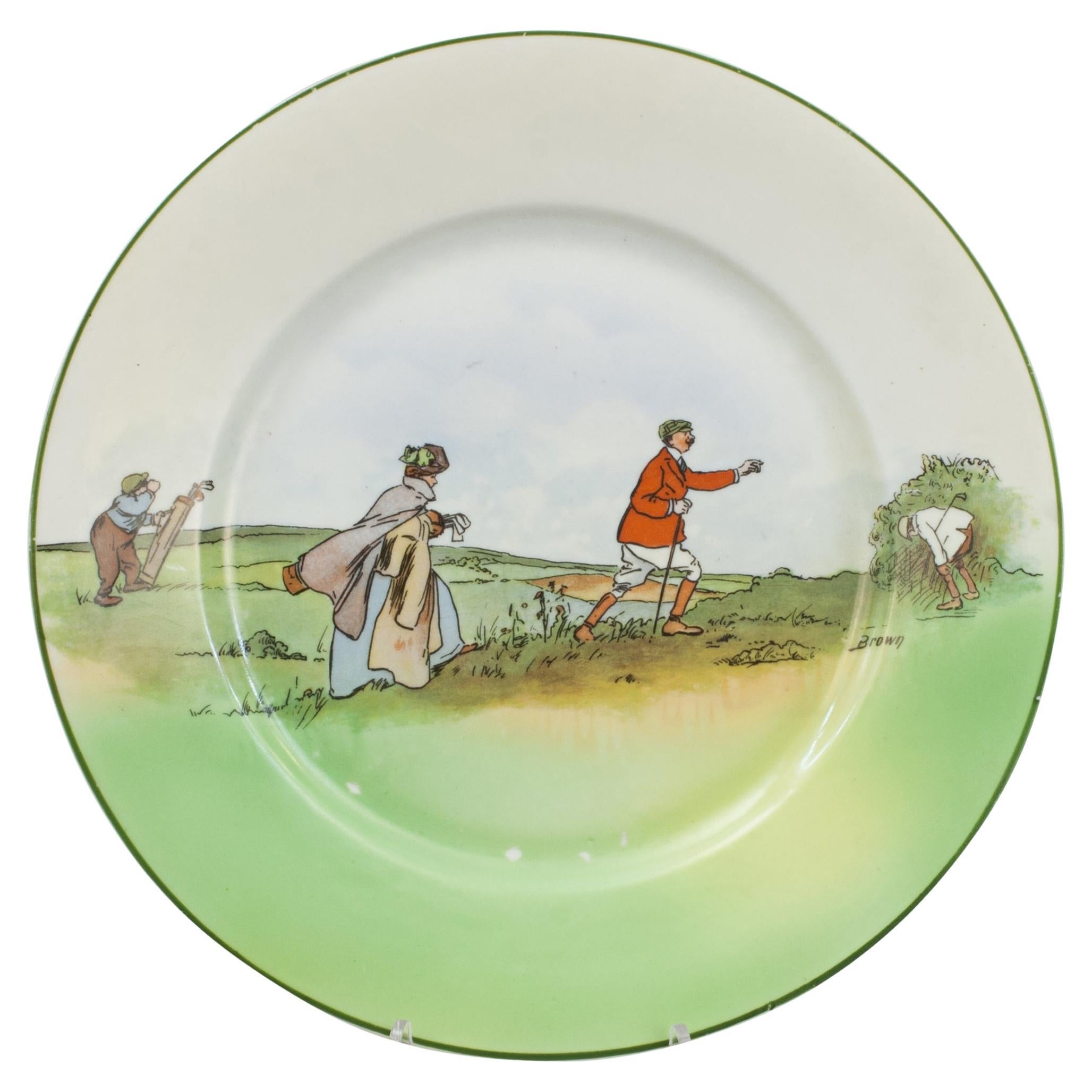 Royal Doulton Rack Teller mit polychromer Golfszene und dem Sprichwort "EVERY DOG HAS HIS DAY, AND EVERY MAN HIS HOUR", entworfen von Charles Cr...
