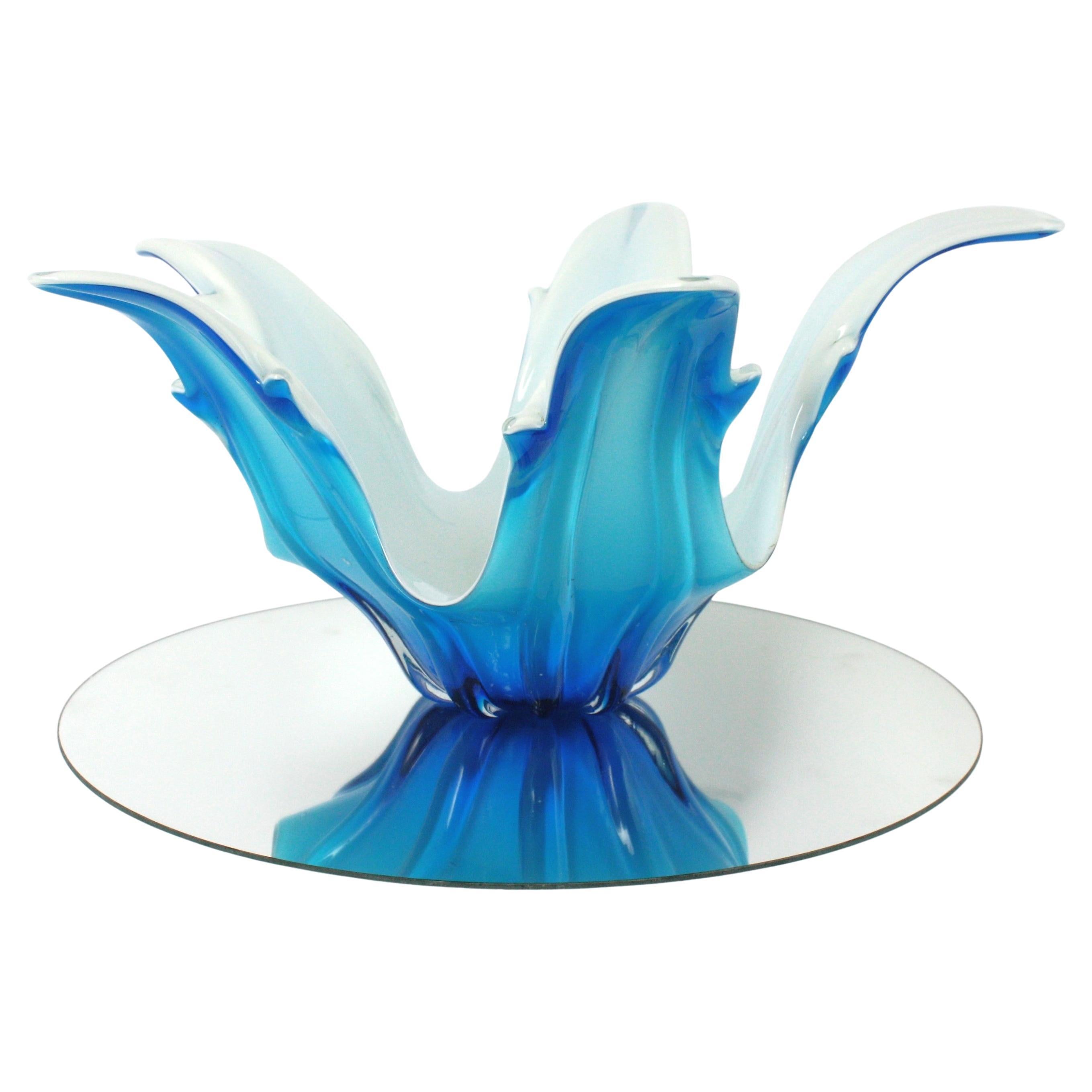 Murano Glass Sommerso Aschenbecher mit quadratischer Schale, leuchtet im UV-Licht