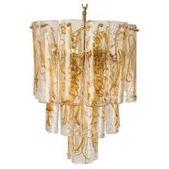 Dieser elegante Kronleuchter, der in den 1970er Jahren in Italien hergestellt wurde, ist ein Beispiel für die zeitlose Schönheit der handgefertigten Glaskunst. Die Leuchte besteht au...