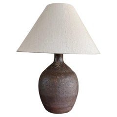 Tischlampe aus braun glasiertem Steingut, entworfen und hergestellt von Rolf Palm, Mölle, Schweden, 1960er Jahre. Alters- und gebrauchsbedingte Abnutzungserscheinungen. Abmessungen...