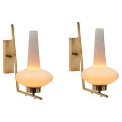 1950er Jahre Italienischer Stilnovo Wandleuchter aus Messing und Opalglas