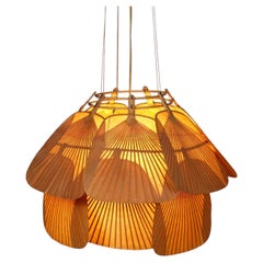 Handgeschnitzte Starburst-Deckenleuchte aus Kiefernholz. Spanien, 1940er Jahre Diese Hängeleuchte wurde vollständig von Hand gefertigt und hat eine auffällige Konstruktion mit einer...