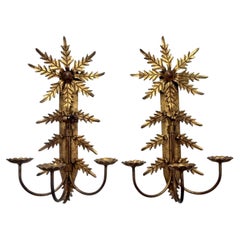 Florale Wandleuchte Bright Boho chic Glamour Italian Tole hand paint Metal , 1960s