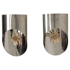 Art-Deco-Revival-Wandleuchter von Luminaria S.A., Spanien, 1970er Jahre. Goldverchromte Metallstrukturen mit Frontmotiven aus massivem Messing im Art-Déco-Stil. Abgeschrägte Opalglas...