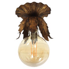 Sunburst Leafed Pendelleuchte mit Deckenleuchte aus vergoldetem Eisen mit Milchglas-Globus