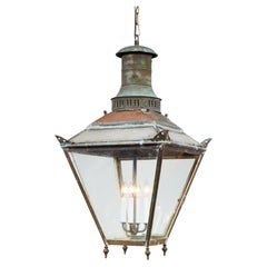 Beleuchten Sie Ihren Raum mit einem Hauch von Geschichte und Eleganz mit dieser beeindruckenden antiken Laterne. Ursprünglich war es eine Wandlaterne, die in eine Deckenlaterne umgew...