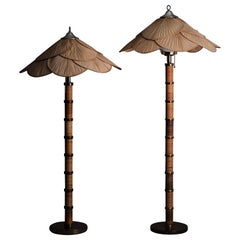 1970er Deutsch Moderne der Mitte des Jahrhunderts Vintage Leuchten aus Bambus