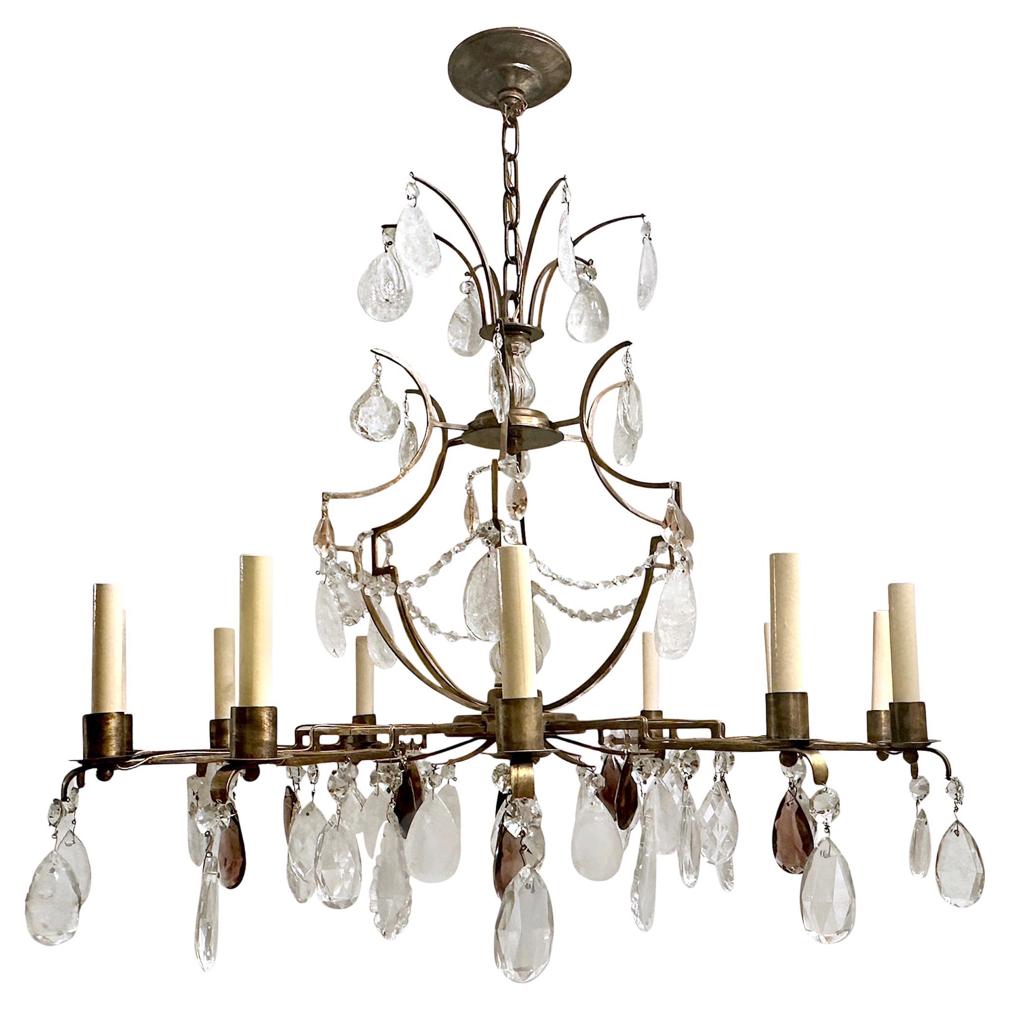Fabulous Mitte des 20. Jahrhunderts Art Deco oder Art Nouveau Milchglas Fransen und vergoldeten Kronleuchter. Durchmesser 23.63 in/ 60 cm Höhe 43.31 in/ 110 cm 12 Glühbirnen E14/ Gu...