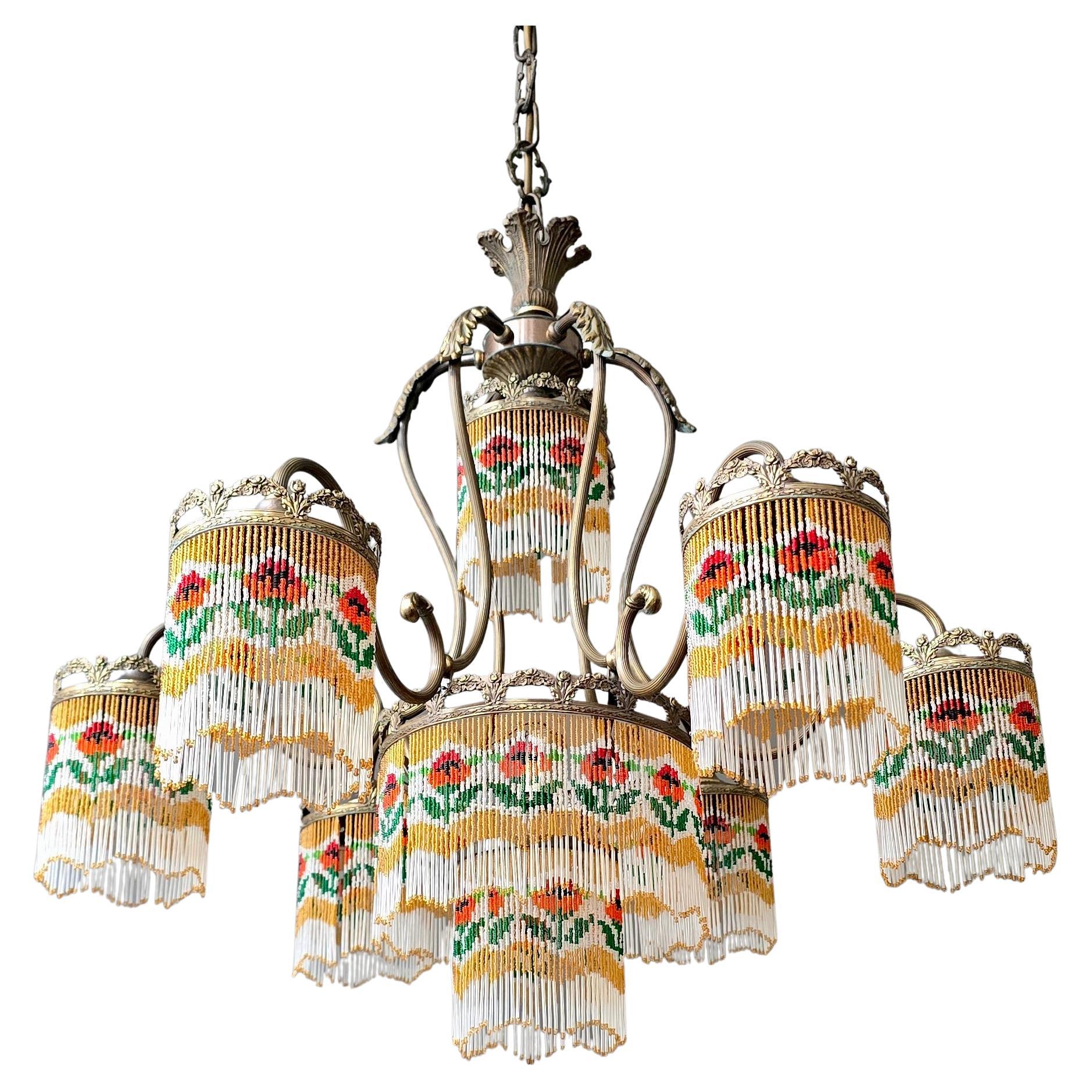 Italienischer 6-Licht-Kronleuchter aus Kristall und Perlenarbeit