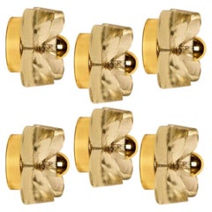 Eine wunderbare Wandlampe aus bernsteinfarbenem Blasenglas mit goldener Emaille aus den 1960er Jahren, entworfen von Helena Tynell für Limburg. Eine 100-Watt-Kandelaber-Fassung. Neu ...