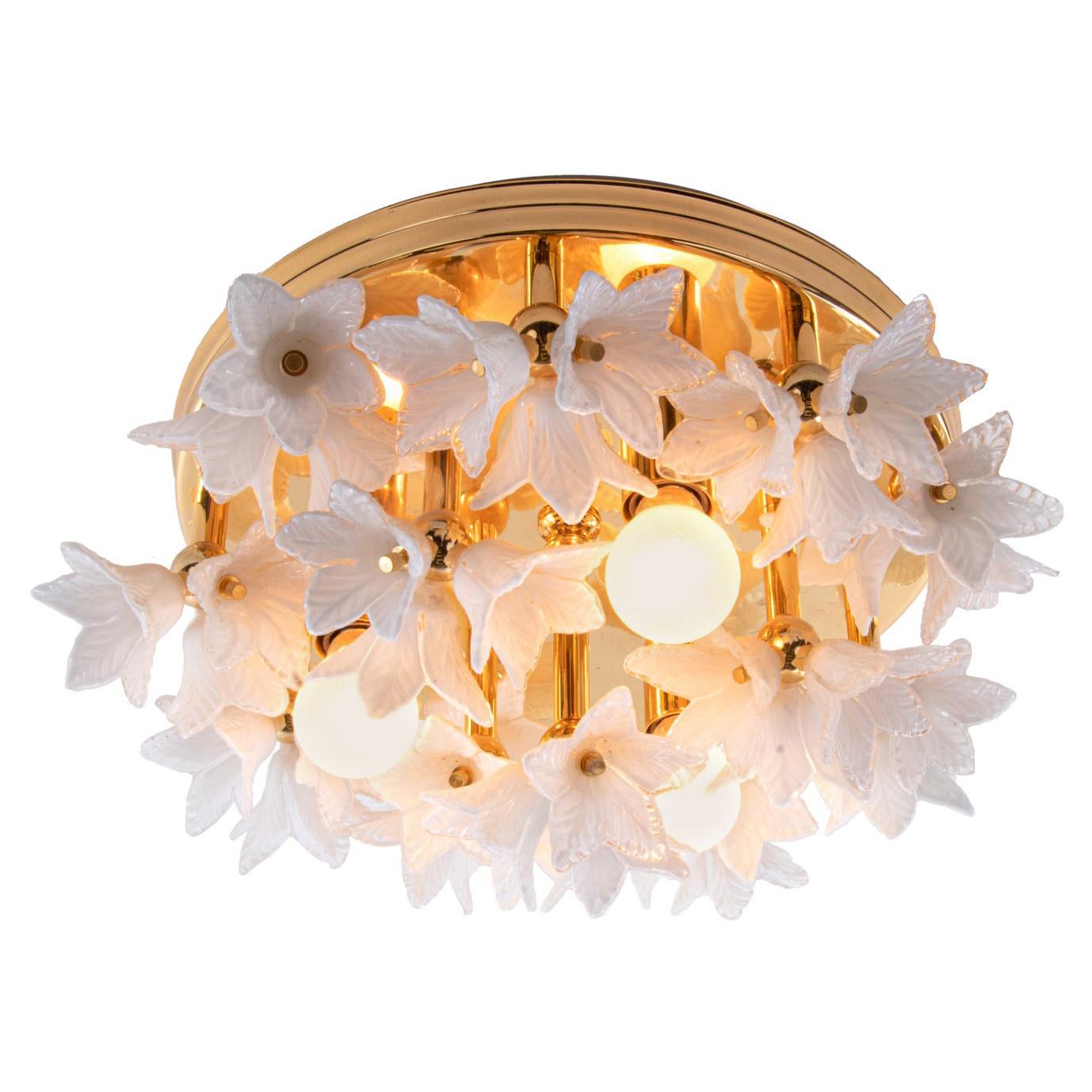 Vierstöckiger Murano Glas Blütenblätter Flush Mount Kronleuchter, 1980er Jahre Italien