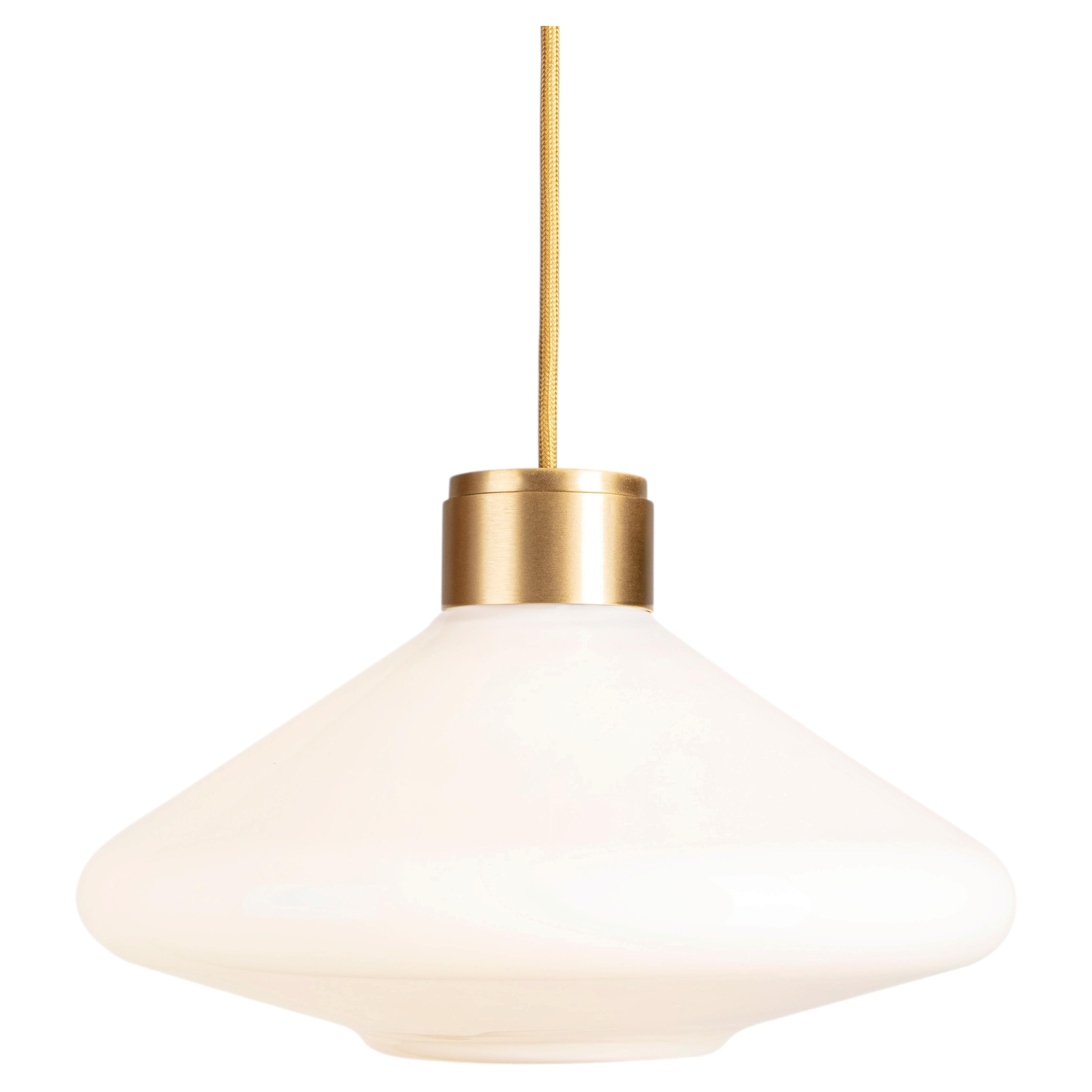 Diese neue tragbare Leuchte von Louis Poulsen wurde ursprünglich in den 1930er Jahren von Vilhelm Lauritzen für den Bau des Radiohuset-Gebäudes in Kopenhagen entworfen und besteht aus drei Schichten mundgeblasenem, glänzendem Glas. Der Schirm ist mit einem Deckel aus gebürstetem Messing und einem Ledergriff versehen, die beide eine natürliche Patina entwickeln werden. Das Ergebnis ist eine tragbare und gleichmäßige Beleuchtung in zeitlosem Design, die jeden Raum verschönert, egal ob sie ein- oder ausgeschaltet ist.