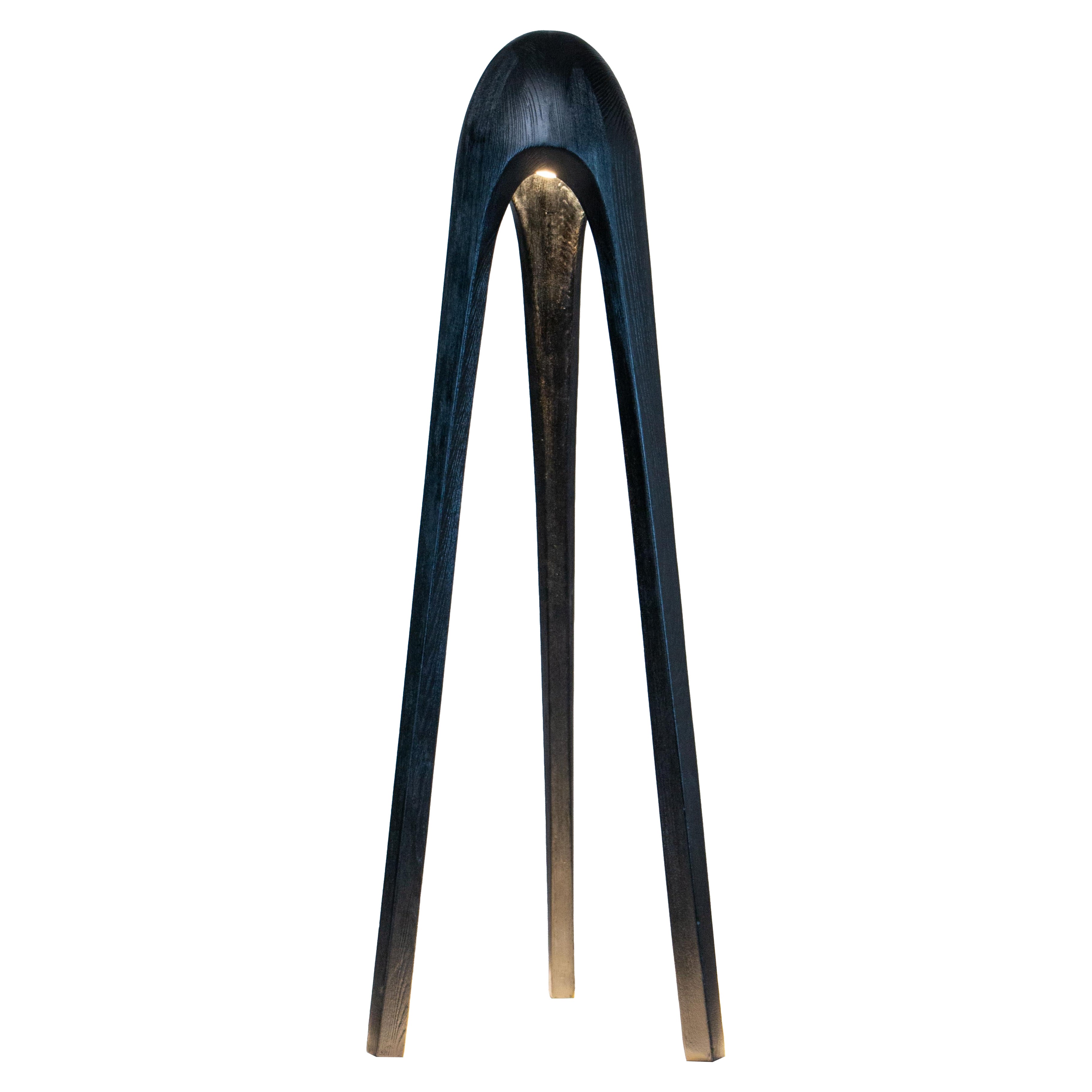 Handgeschnitzte Mid-Century Modern Light, Infinity Skulpturale Massivholz Stehleuchte