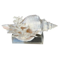 Schöne natürliche Muschel mit cremefarbener Patina, fachmännisch gereinigt und auf originalem natürlichen Korallensockel montiert, einige Kristallquarz-Akzente. Großartiges natürlich...