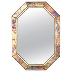 Venezianischer moderner rechteckiger Wandspiegel mit Details aus Messing und Giltwood