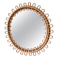 Italienische Riviera Franco Albini Ovaler Wandspiegel aus Rattan, Loop-Design, 1950er Jahre