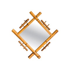 Organischer moderner Spiegel aus Bambus und Rattan im Stil von Franco Albini, 1960er Jahre