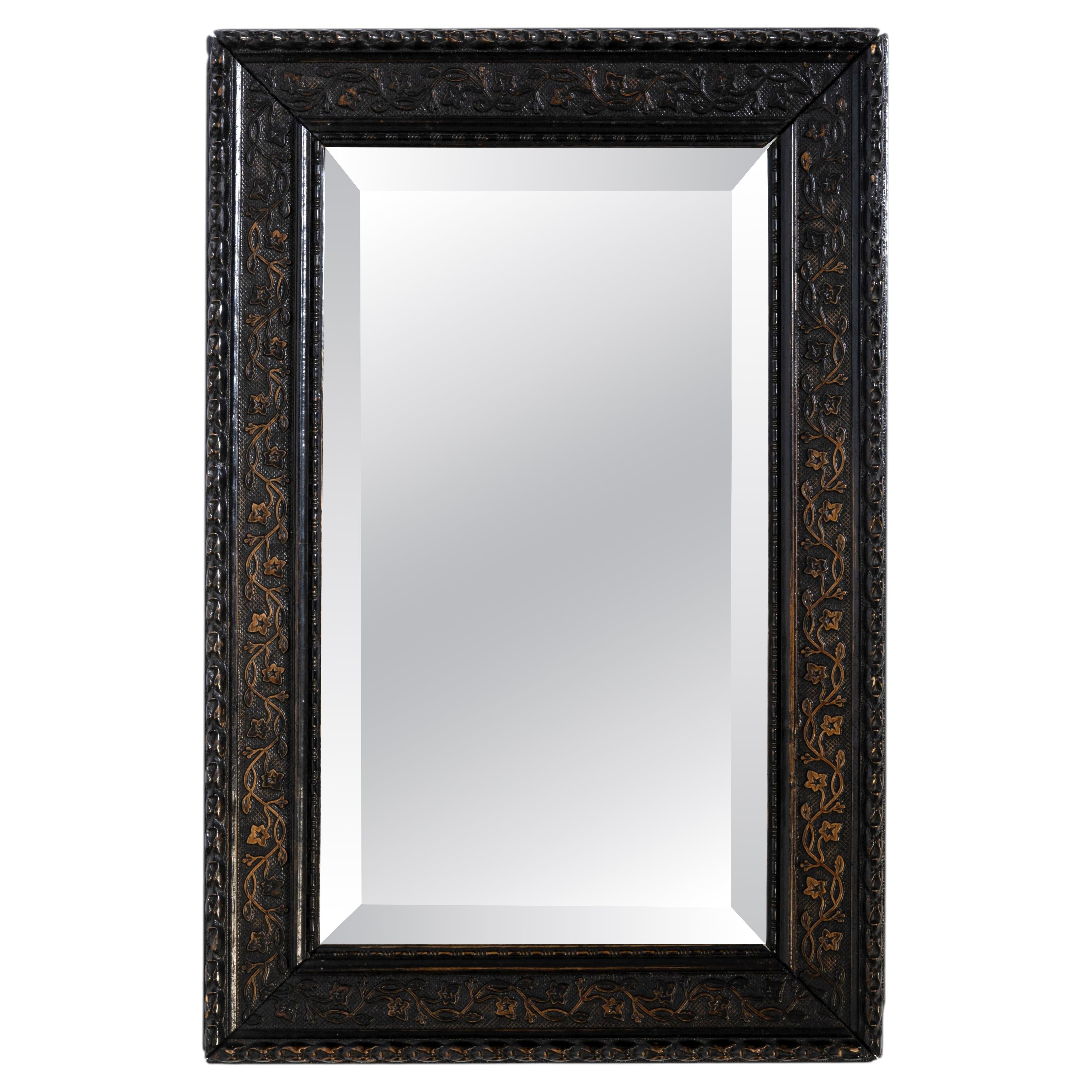 Dieser Spiegel ist mit faszinierenden geometrischen Mustern verziert und unterstreicht die sorgfältige Kunstfertigkeit der traditionellen Knocheneinlegearbeiten. Jedes Detail ist eine Hommage an die jahrhundertealten Techniken des dekorativen Designs, neu interpretiert in einer eleganten schwarzen Harzoberfläche. Das Ergebnis ist ein umwerfendes Stück, das Eleganz ausstrahlt und gleichzeitig zeitlos ist.