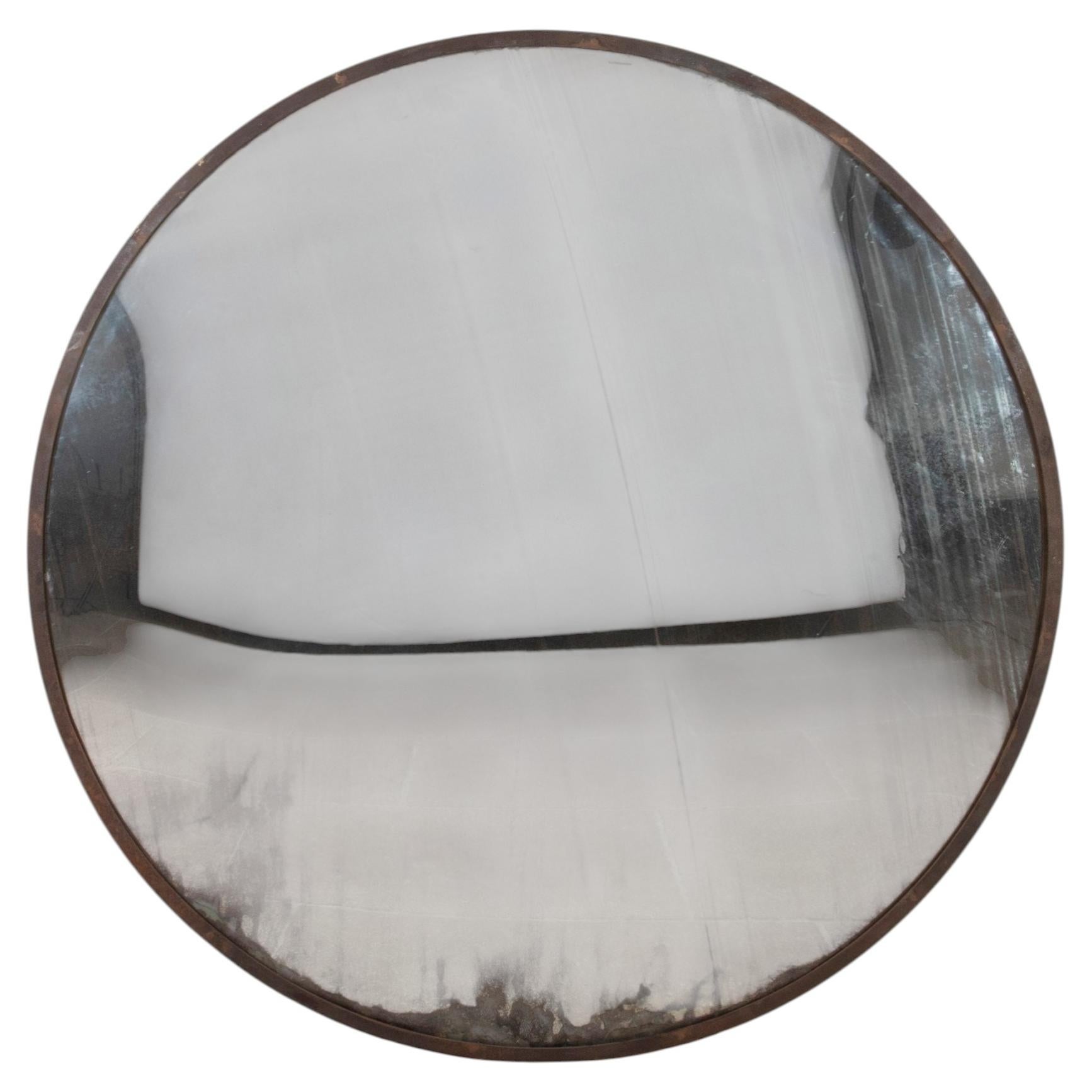 Deckenspiegel, handgefertigt, rund, mit Bronze-Patina-Messingrahmen