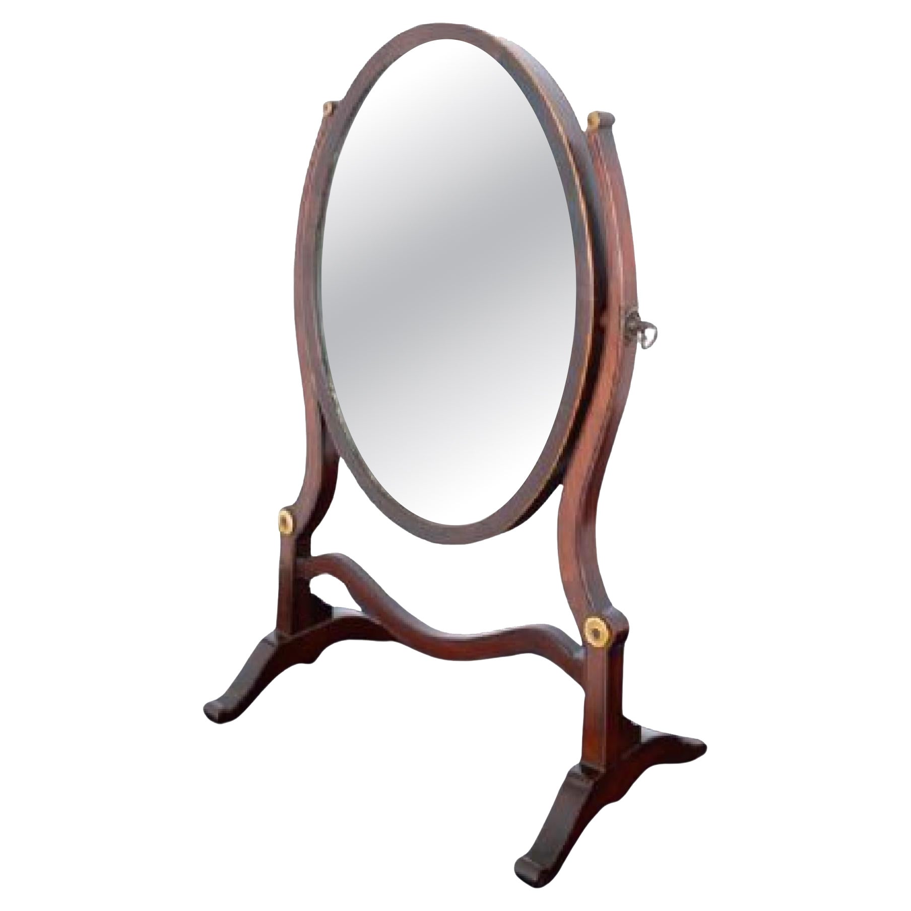 Ovaler Toilettenspiegel aus Mahagoni im Sheraton-Stil CIRCA 1900 Dieser Spiegel steht auf geformten Füßen mit geformten Stützen und einer geformten Bahre Der verstellbare Spiegel mit...
