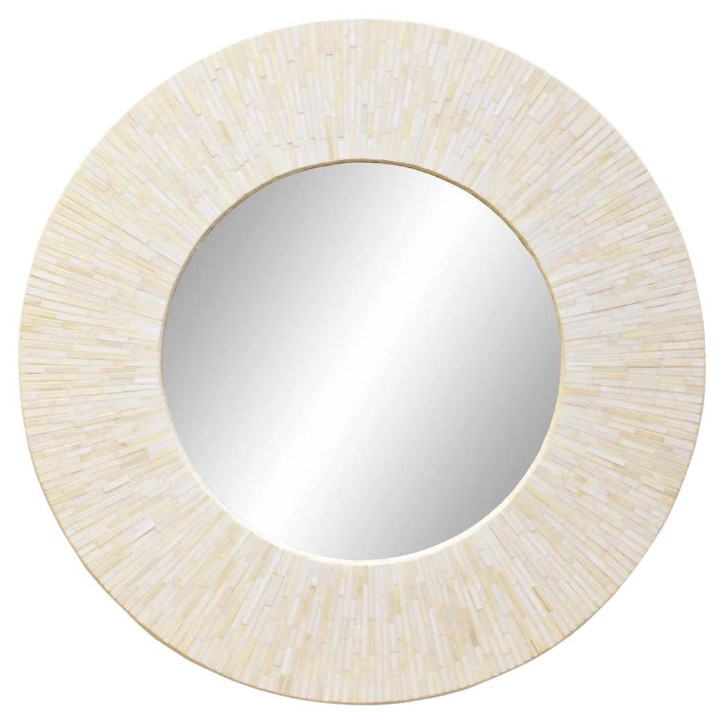 Jeder Spiegel wird mit Präzision und Sorgfalt handgefertigt und ist ein wahrer Liebesdienst. Es besteht aus über 200 einzeln geschnittenen und geformten Knochenstücken, die fachmännisch zu komplizierten Mustern angeordnet sind. Nach dem Zusammenbau wird jedes Stück einem sorgfältigen Färbeprozess unterzogen, um eine makellose Oberfläche zu gewährleisten, die seine Schönheit und Langlebigkeit unterstreicht.