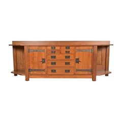 Seltenes Phillip Lloyd Powell Freistehendes Sofa in geschnitztem Nussbaum