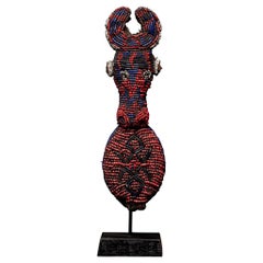 Dekorative Holz-Ancestor-Figur aus Bambus, bestickt mit europäischen Glasperlen