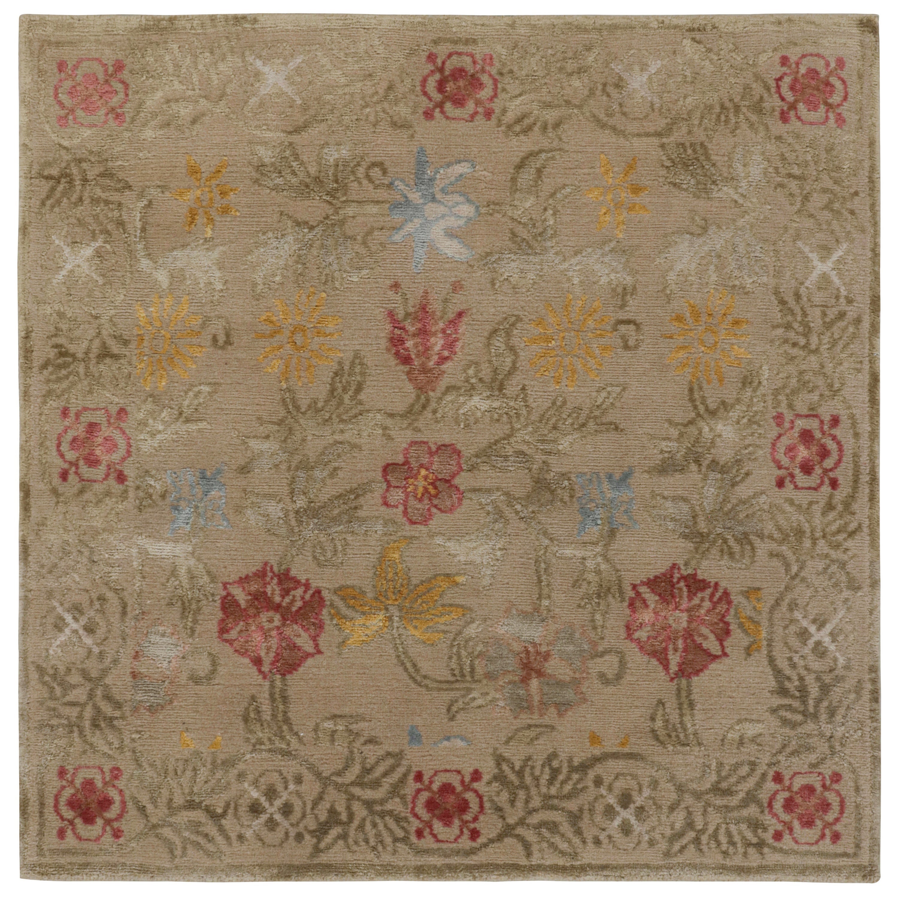 Moderner Art Deco Stil Handgefertigter Wollteppich in Rosa mit Blumenmuster