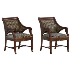 Dänische Biedermeier-Sessel aus dem frühen 20. Jahrhundert, hergestellt während der Regierungszeit von Christian X. (1912-1947). Die Stuhlrahmen sind aus satinierter Birke gefertigt,...