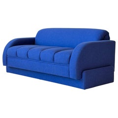 Vintage Postmodern Gebogene Seite Blau Leder Sofa