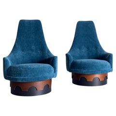 Paar pulverblaue Mohair-Samt-Schwenkstühle "Nautilus" von Vladimir Kagan