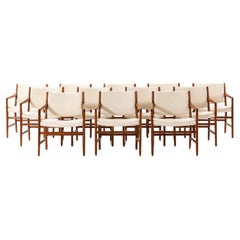 Satz von 12 Henning Kjærnulf "Razorblade" Esszimmerstühlen in Eiche & Mohair, 1960er Jahre