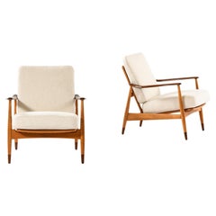 Dänische Modernität, Ein Paar Loungesessel aus Eiche und Wolle, Henning Kjærnulf, 1960er Jahre