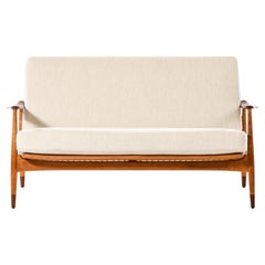 Dänisches Sofa der Jahrhundertmitte mit Beinen und Akzenten aus Teakholz von Georg Thams Dänemark 1957