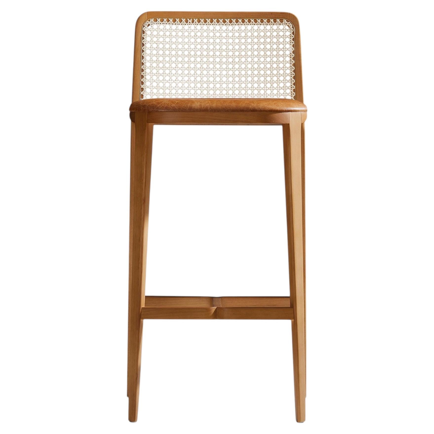 Diese französische Bergère aus dem 20. Jahrhundert ist eine elegante Darstellung des Stils Louis XV, der für seine anmutigen Kurven und raffinierten Ornamente bekannt ist. Das Gestell des Stuhls ist aus geschnitztem Holz, wahrscheinlich Buche oder Nussbaum, gefertigt und in einem warmen, natürlichen Farbton gehalten, der die filigranen Details hervorhebt. Die hohe, abgerundete Rückenlehne, ein Markenzeichen des Louis XV-Stils, sorgt für Komfort und eine einladende Ausstrahlung der Bergère.