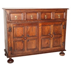 william & Mary Eichenanrichte aus dem 18. Jahrhundert mit vier Schubladen, zwei kleineren Schränken darunter und einem größeren an der Seite. Die Kommode weist alle Merkmale auf, die...