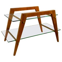 Schöner handgedrechselter und handgefertigter englischer Beistelltisch aus Platane/Ahorn und Nussbaum im modernistischen Design. Die Oberseite hat eine gepolsterte, gedrechselte Unte...