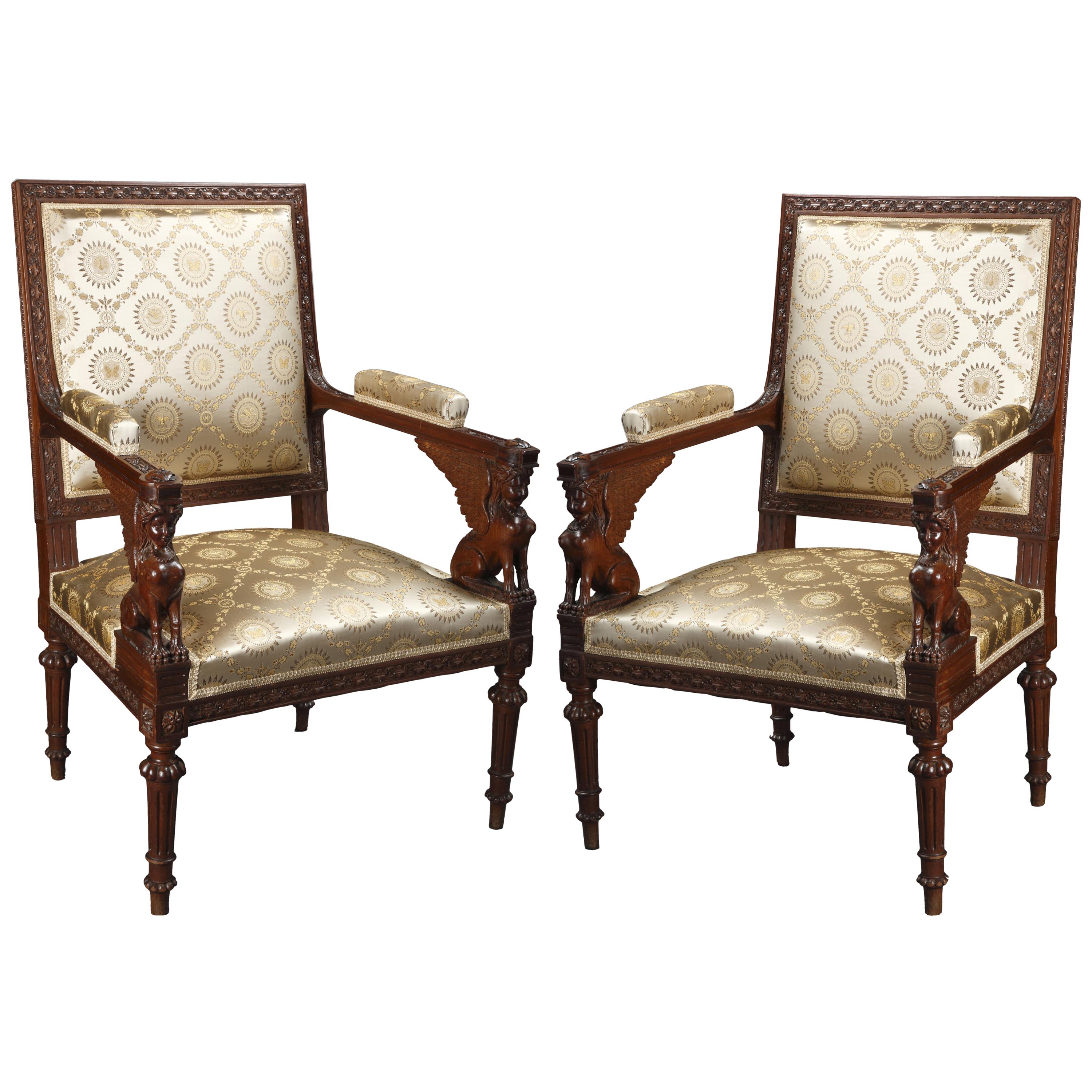 19. Jahrhundert Französisch Napoleon III Sessel W / Golden Ochre Mohair - Ein Paar