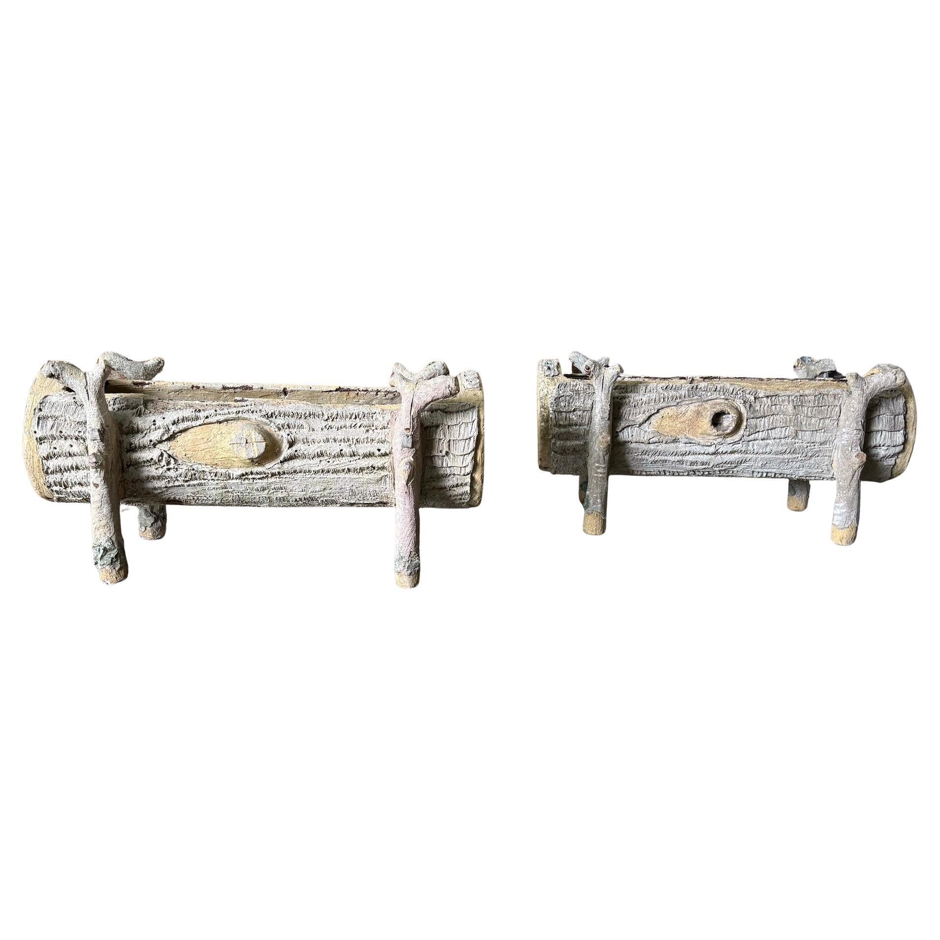 Paar Antique French Faux Bois Schmiedeeisen & Drahtwerk Pflanzenständer Jardinieres