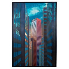 Französisches Gemälde im konstruktivistischen Stil der 1970er Jahre mit einem stilisierten Vogel.