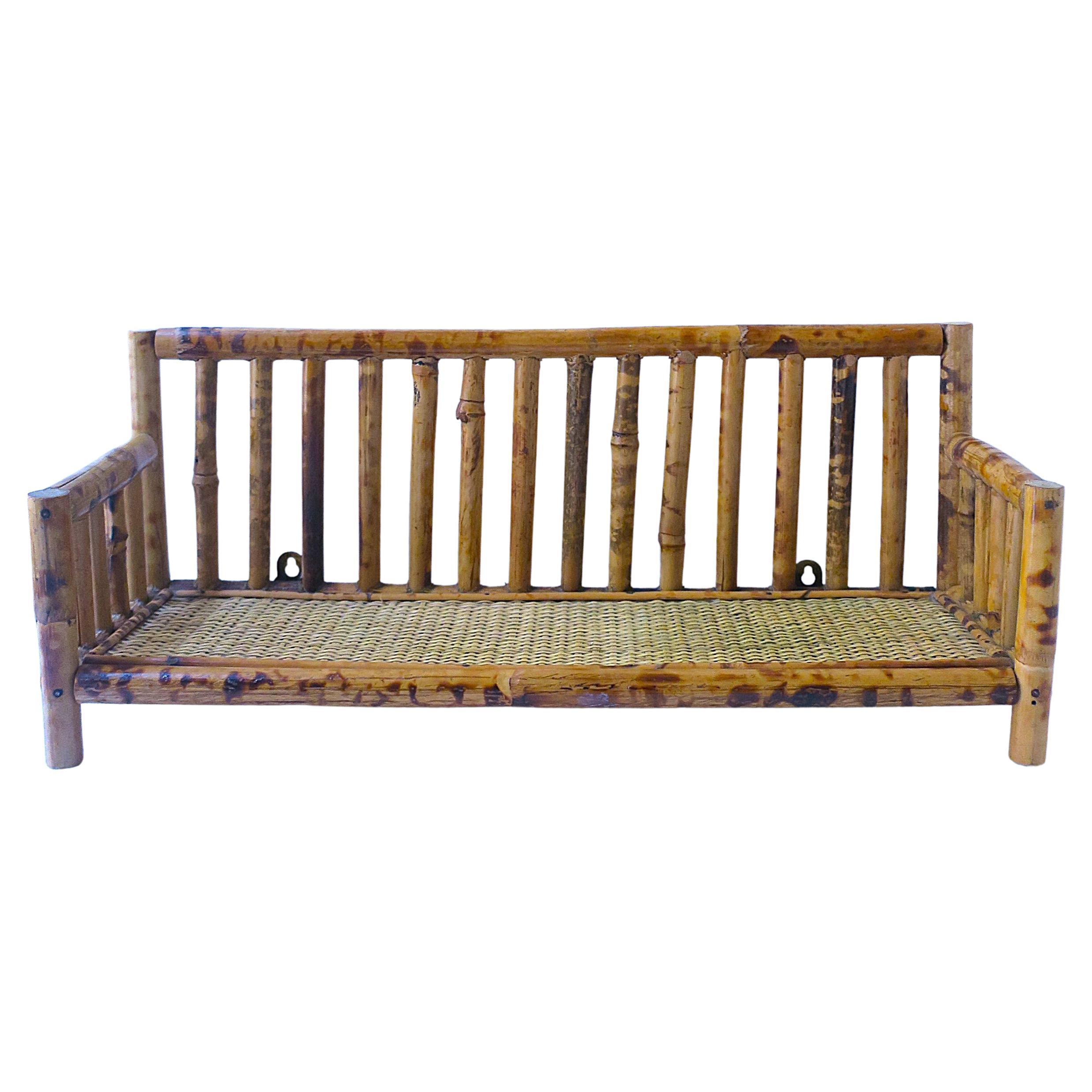 Wunderschönes großes organisches Mid-Century-Wandregal, komplett aus Bambus, Rattan und handgeflochtener Weide. Dieses atemberaubende Stück wurde wahrscheinlich in den 1970er Jahren ...